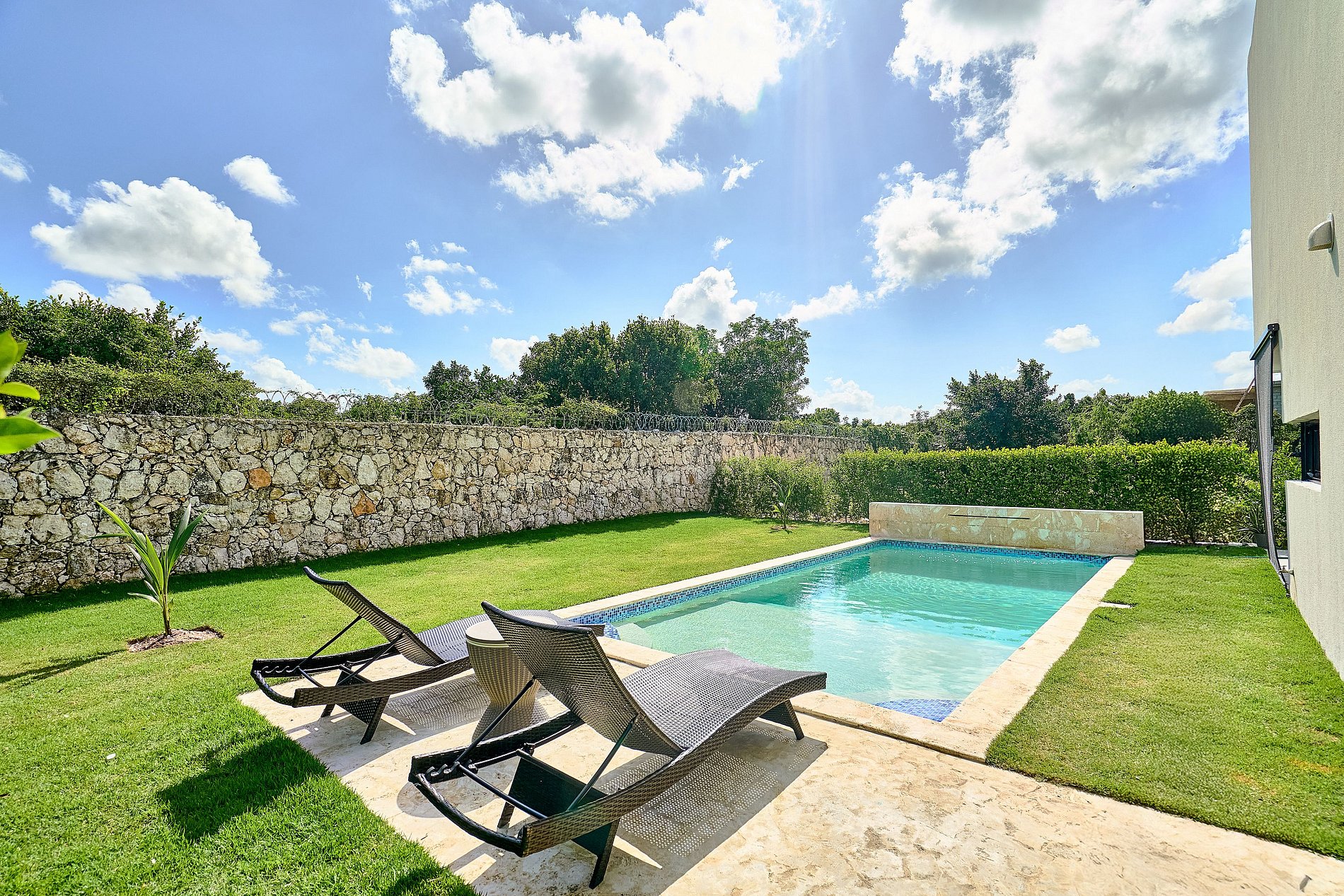 The villa is equipped with a private pool, BBQ, sunbathing area, and garden, offering a perfect setting for relaxation. Inside, it boasts 4 bedrooms with private bathrooms, individually controlled air conditioning, and a fully equipped kitchen with direct access to the pool. Vista Cana offers 24/7 security and a prime location just 10 minutes from the airport and 8 minutes from the best beaches.
