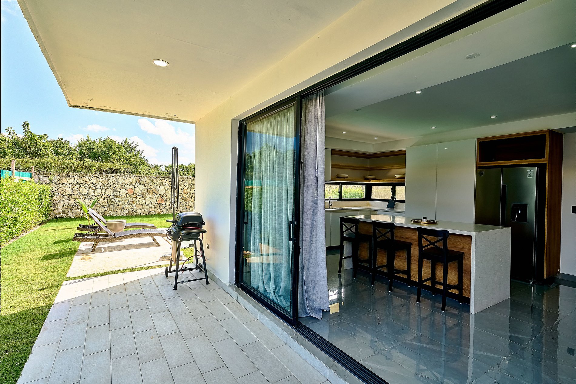 The villa is equipped with a private pool, BBQ, sunbathing area, and garden, offering a perfect setting for relaxation. Inside, it boasts 4 bedrooms with private bathrooms, individually controlled air conditioning, and a fully equipped kitchen with direct access to the pool. Vista Cana offers 24/7 security and a prime location just 10 minutes from the airport and 8 minutes from the best beaches.