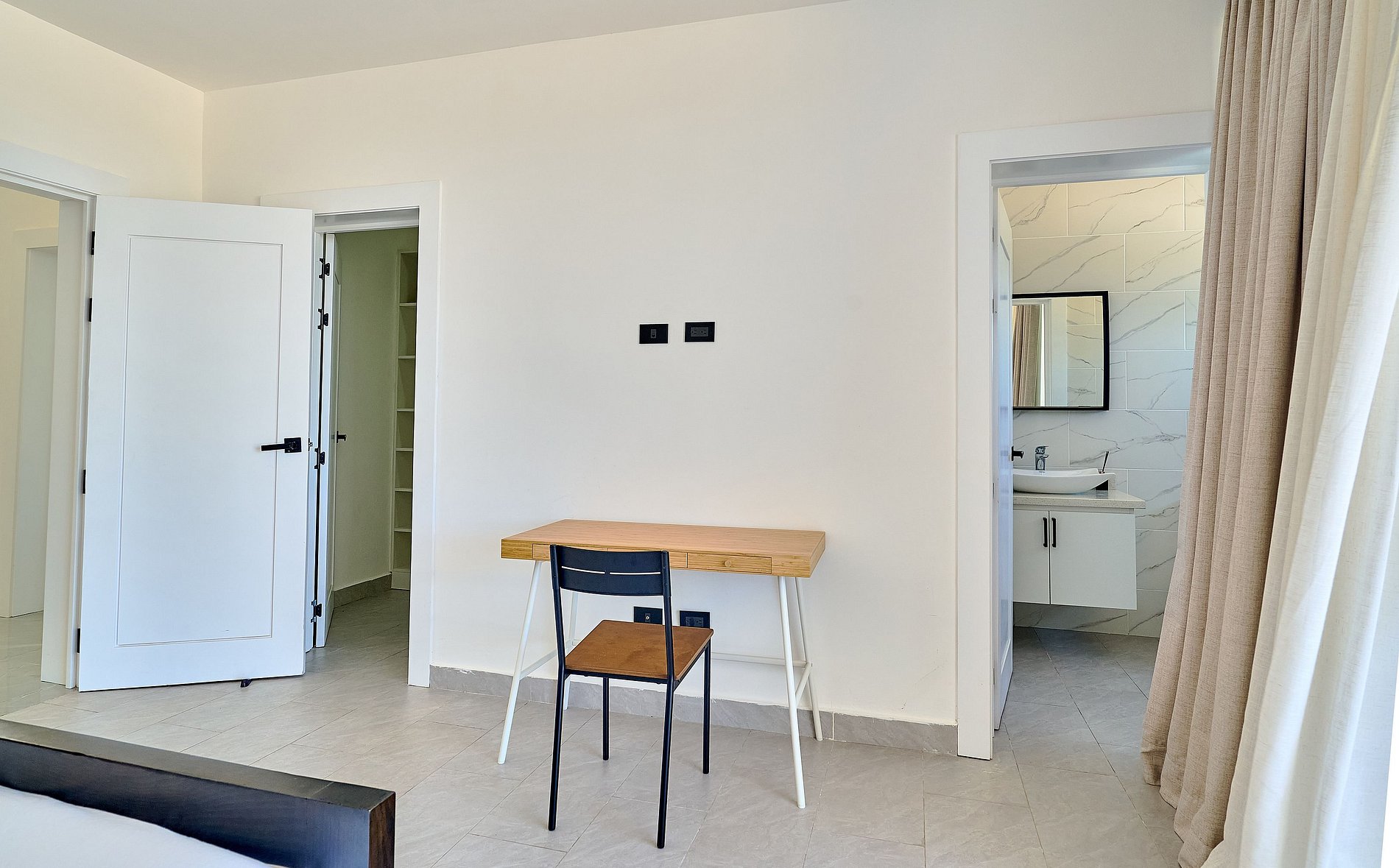 Inside, the villa offers a spacious and modern design, featuring four bedrooms, each with a private bathroom, ensuring comfort for everyone. The living and dining areas are designed for group gatherings, and the fully equipped kitchen allows guests to prepare meals just like at home. Plus, staying in Vista Cana means enjoying an exclusive and secure environment with artificial lakes, an illuminated golf course, eco-trails, and on-site restaurants.