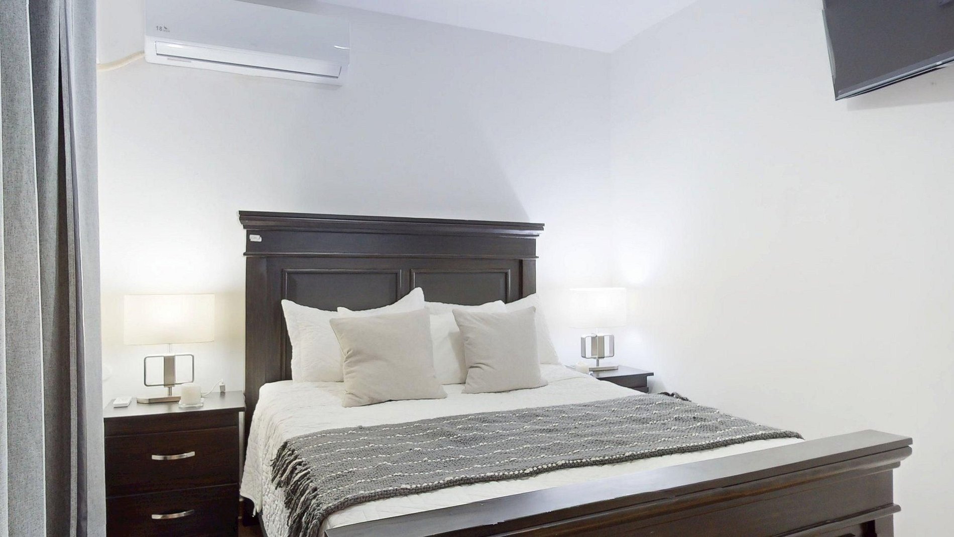 Air-conditioned rooms, blackout curtains, optional high-speed Wi-Fi, TVs in both bedroom and living room, and a smart lock for easy, keyless access.
