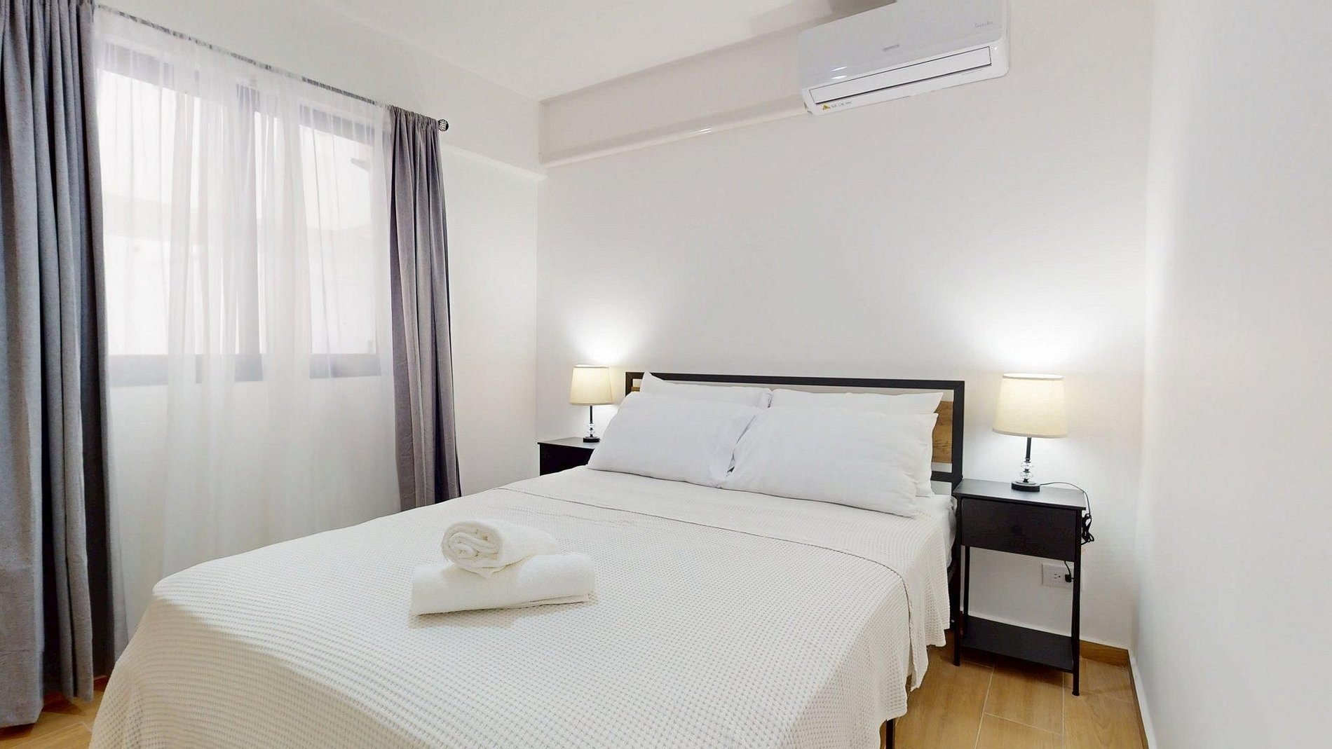 Air-conditioned rooms, blackout curtains, TVs in both bedroom and living room, and a smart lock for easy, keyless access.