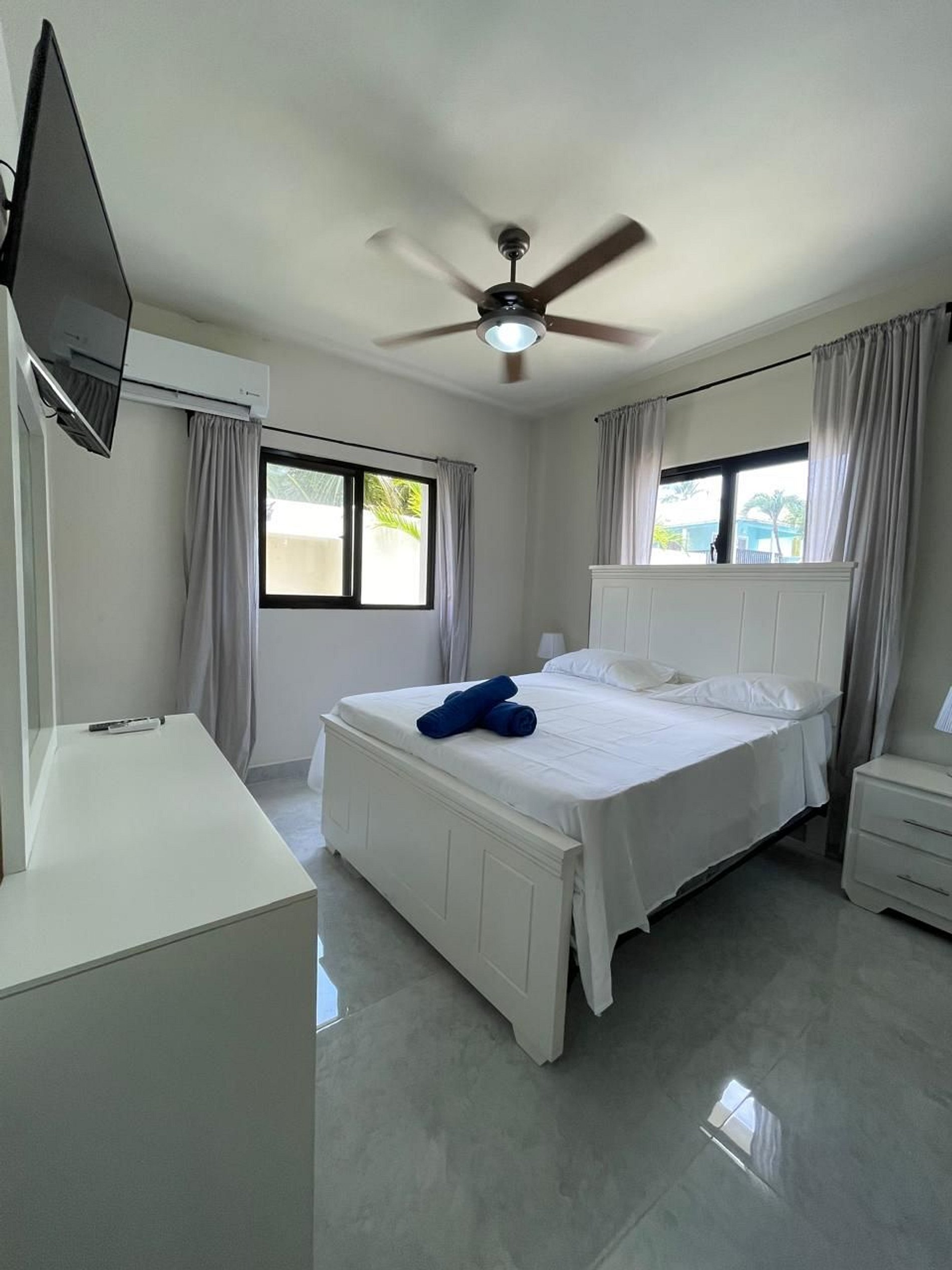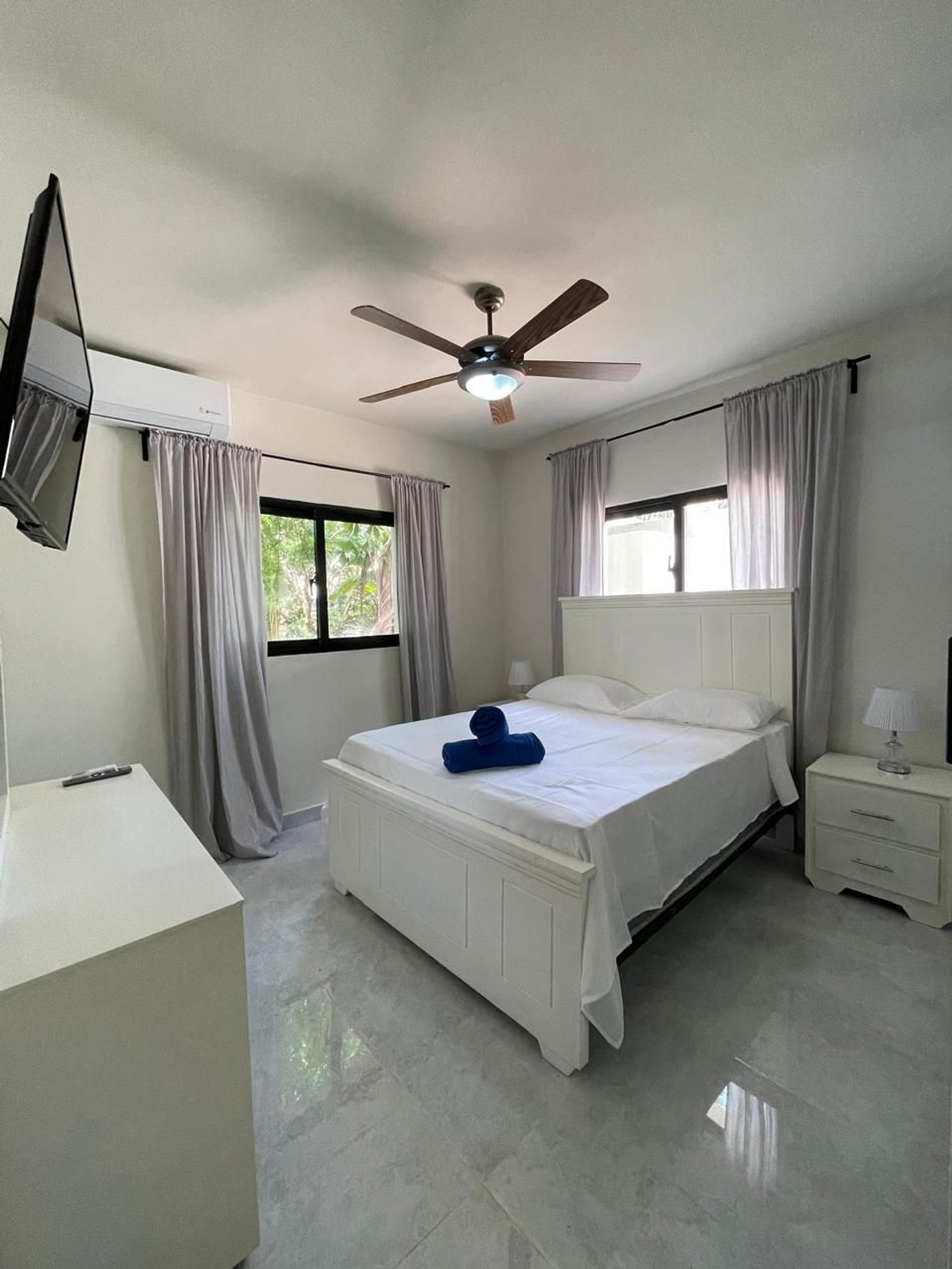 Enjoy your stay at Residencial Palmar, featuring spacious 2-bedroom, 2-bathroom apartments with A/C in every room, a fully equipped kitchen, TVs in each bedroom and the living room, plus Starlink internet. The condominium offers a pool with sun loungers and private parking. Located in the heart of Cortecito, you’ll be just a 5-minute walk from the beach, surrounded by bars, restaurants, gyms, minimarkets, and essential services.