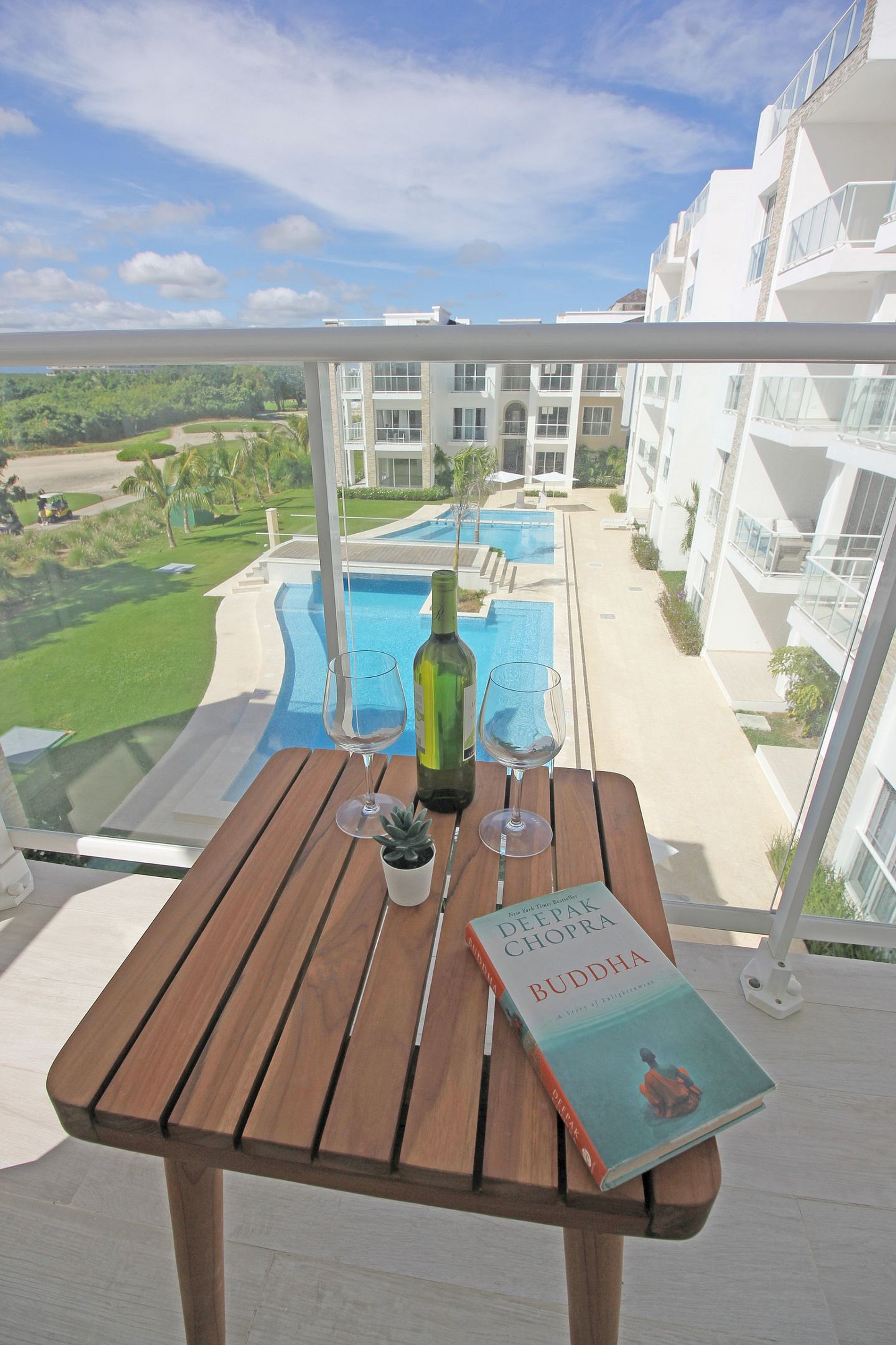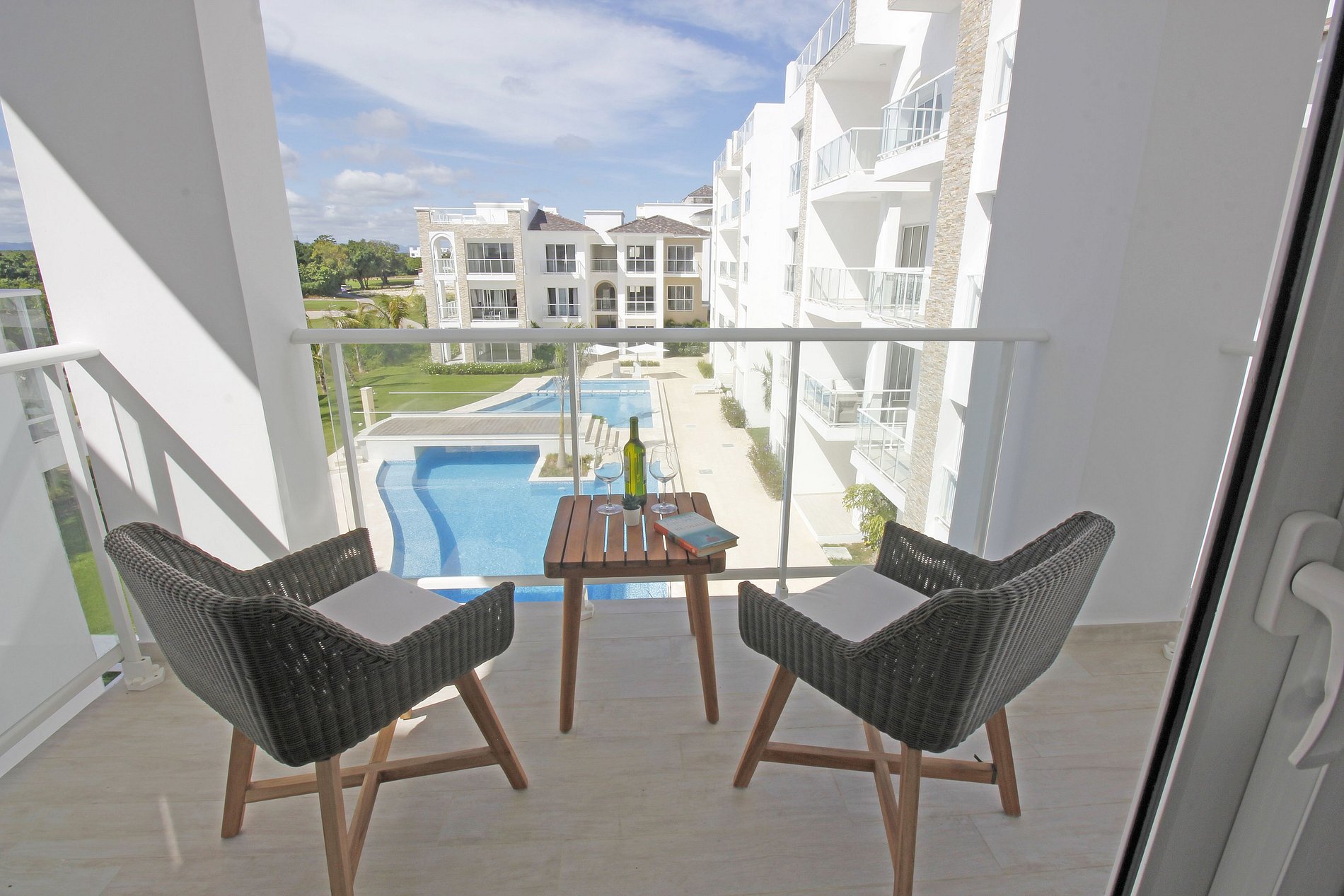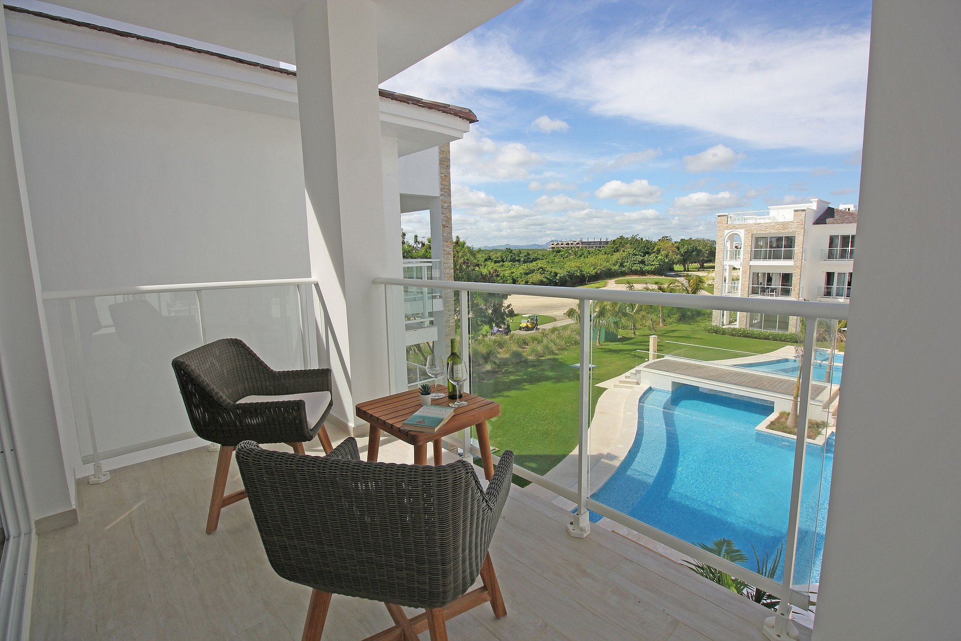 La habitación cuenta con una lujosa cama king size, TV de 55", y acceso a un amplio balcón. Cuenta con una cocina totalmente equipada y el área social integrada brindan comodidad y estilo, con un sofá cama doble en el área de estar. Disfruta de la terraza con impresionantes vistas. Estacionamiento privado y acceso a instalaciones de primer nivel como campo de golf, club de playa, canchas de tenis, casino y restaurante.
