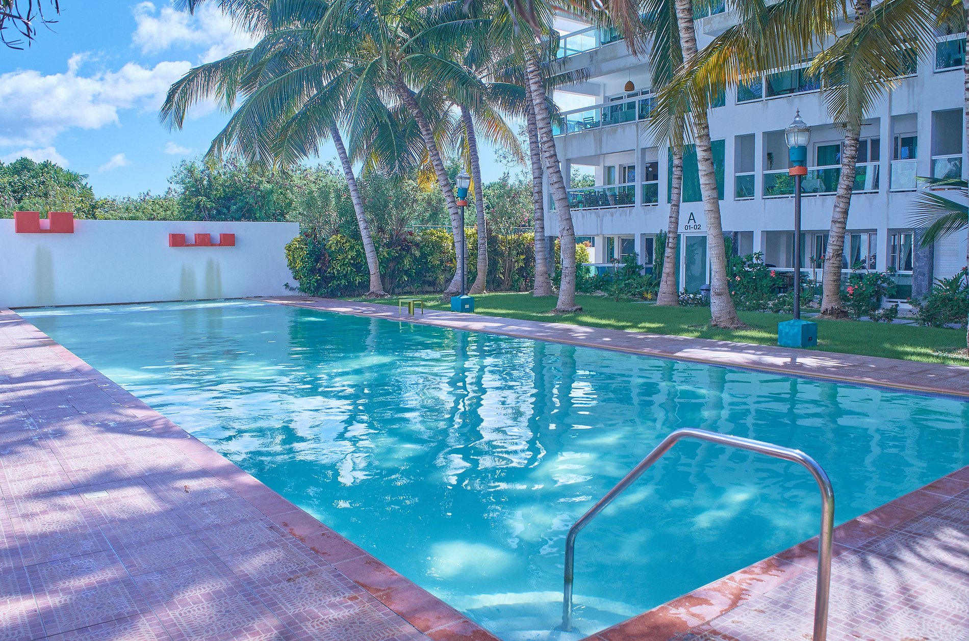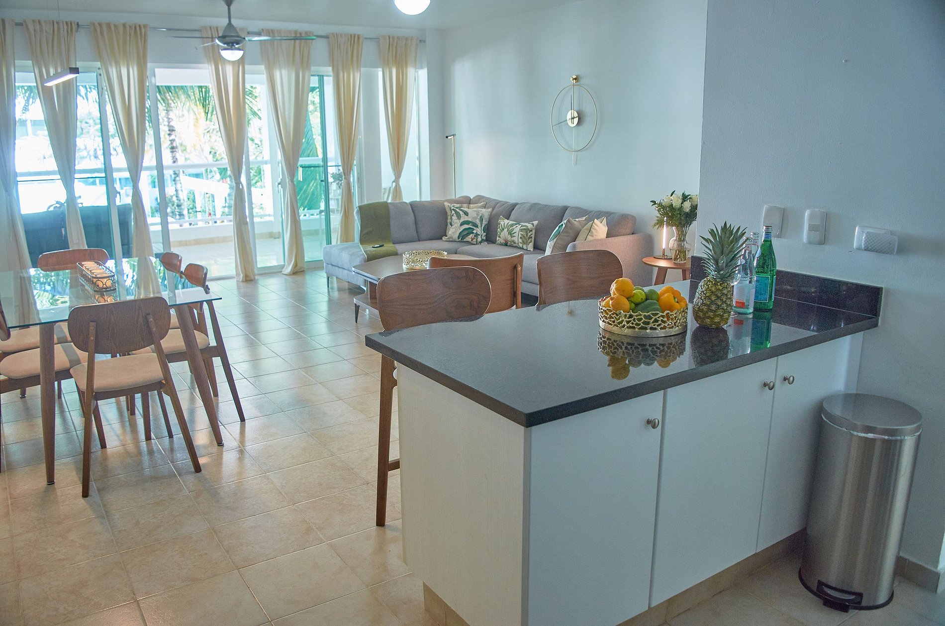 Con una decoración moderna inspirada en tonos marinos y turquesas, el apartamento B104 es un refugio sereno ideal para quienes desean desconectarse y disfrutar del entorno tropical. La terraza, completamente amueblada, se convierte en el lugar perfecto para comenzar el día con una taza de café o relajarse con una copa de vino al atardecer.