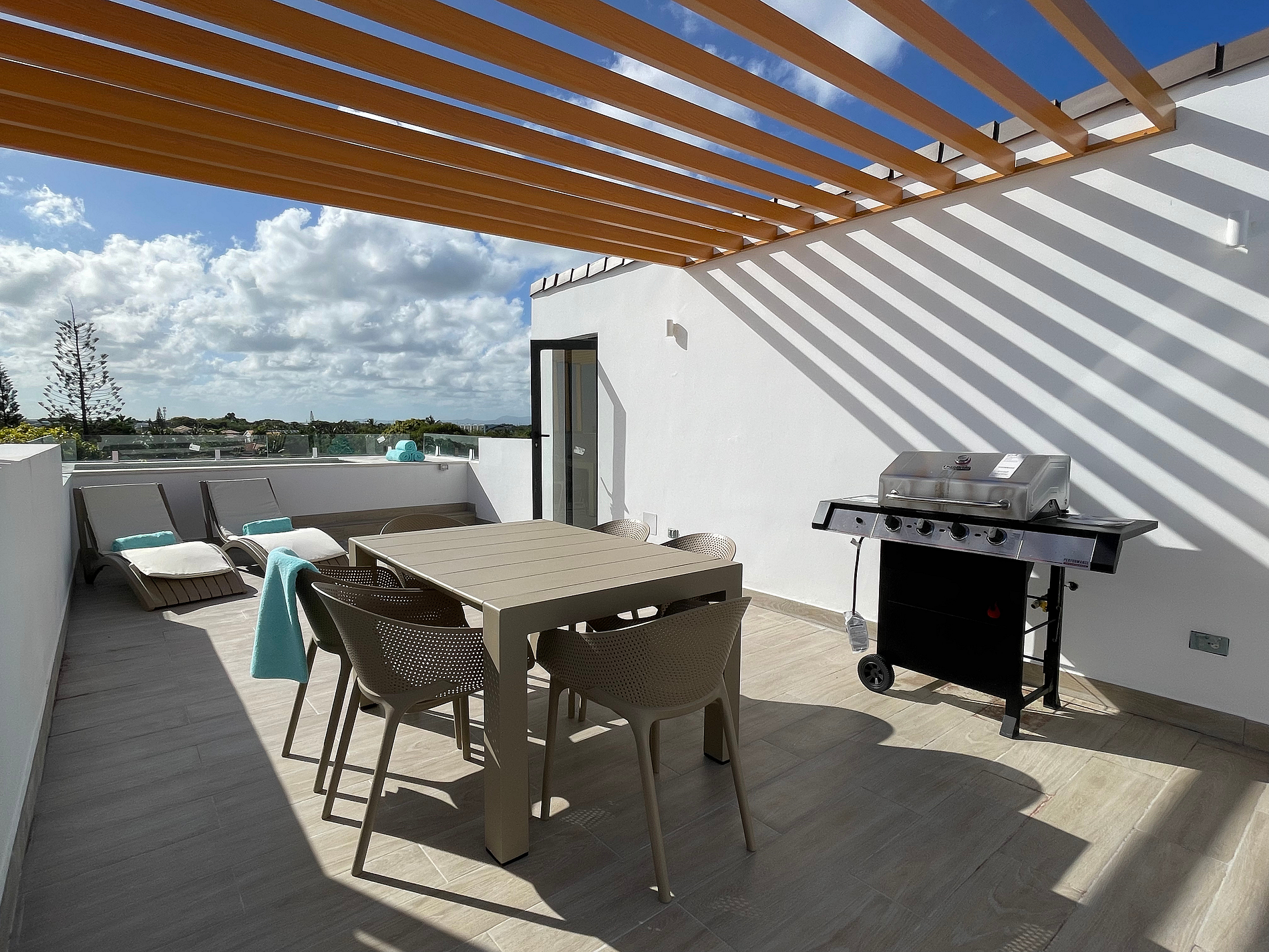 Los huéspedes tendrán acceso exclusivo a todas las áreas del apartamento, incluyendo la terraza privada con picuzzi, barbacoa y solárium. También podrán disfrutar de las amenidades del residencial, como la piscina común, caminerías y canchas de pádel.