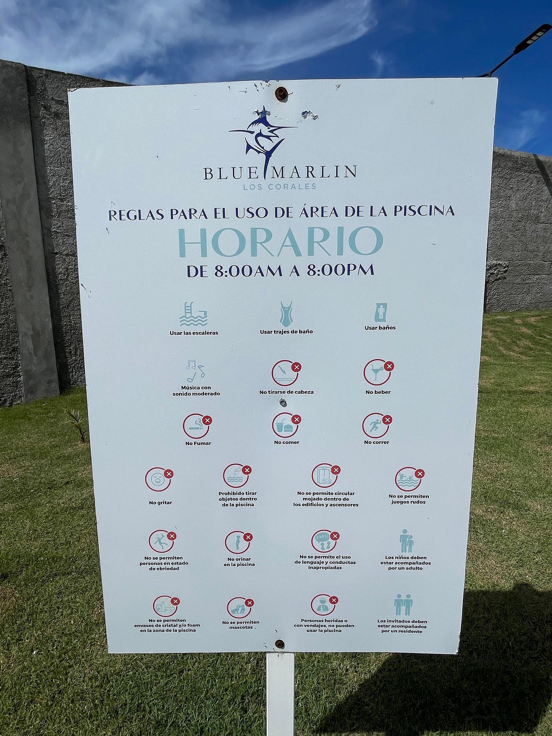 Verificar las normas del residencial en las áreas comunes a la llegada.