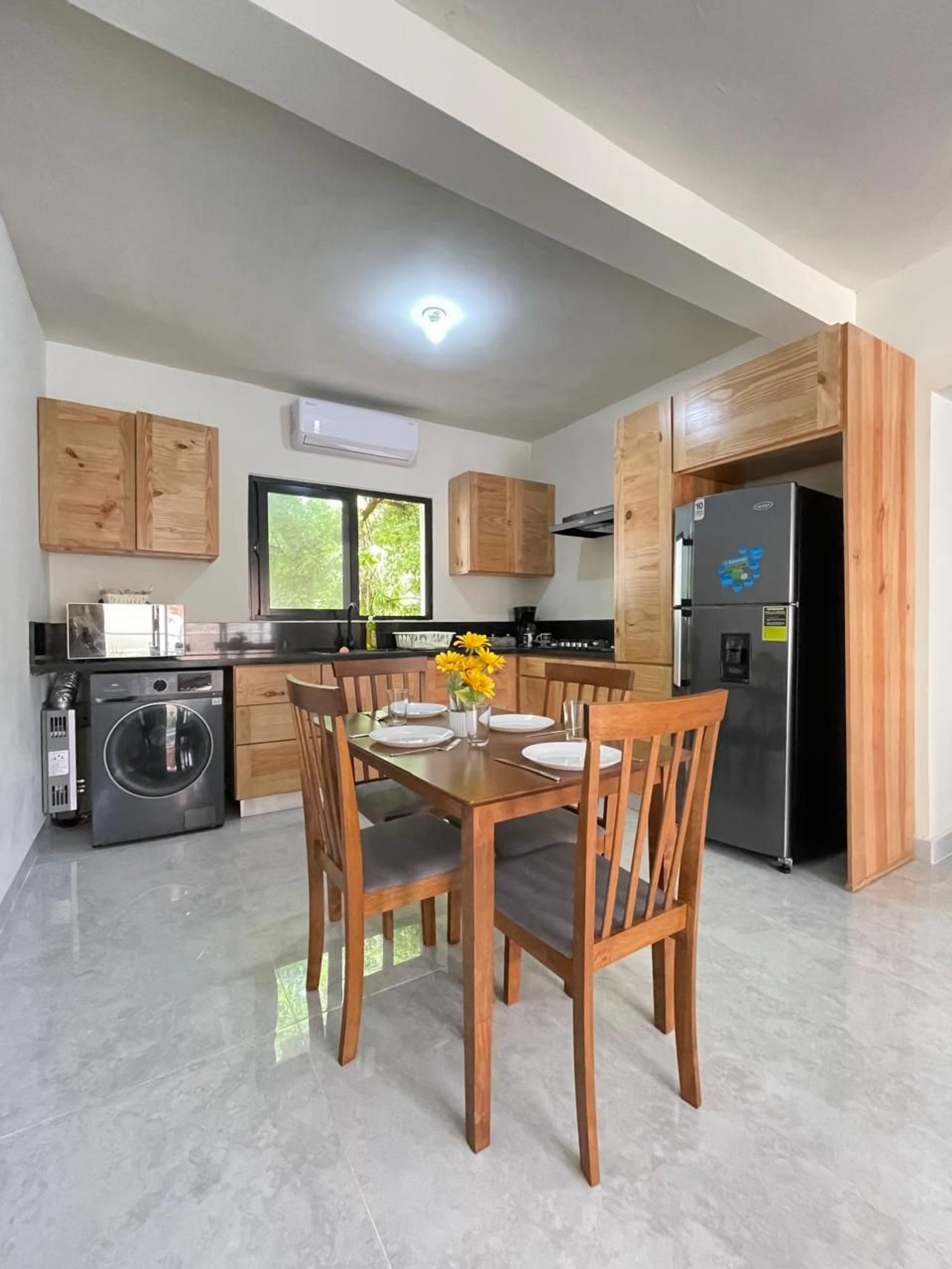 Aquí encontrarás 12 apartamentos totalmente equipados, cada uno con 2 habitaciones, 2 baños completos, aire acondicionado en todas las áreas, cocina lista para usar, televisión en cada habitación y sala, e internet de alta velocidad Starlink.