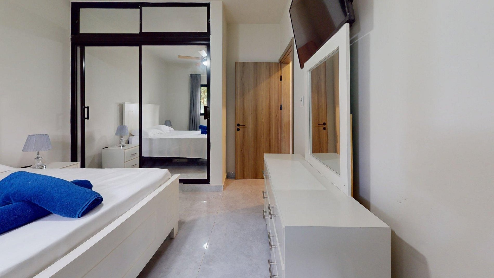 Disfruta tu estadía en el Residencial Palmar, con amplios apartamentos de 2 habitaciones y 2 baños, aire acondicionado en todas las áreas, cocina totalmente equipada, TV en cada habitación y sala, e internet Starlink. El condominio ofrece piscina con camastros y parqueo privado. Ubicado en el corazón del Cortecito, estarás a solo 5 minutos caminando de la playa, rodeado de bares, restaurantes, gimnasios, minimarkets y servicios.