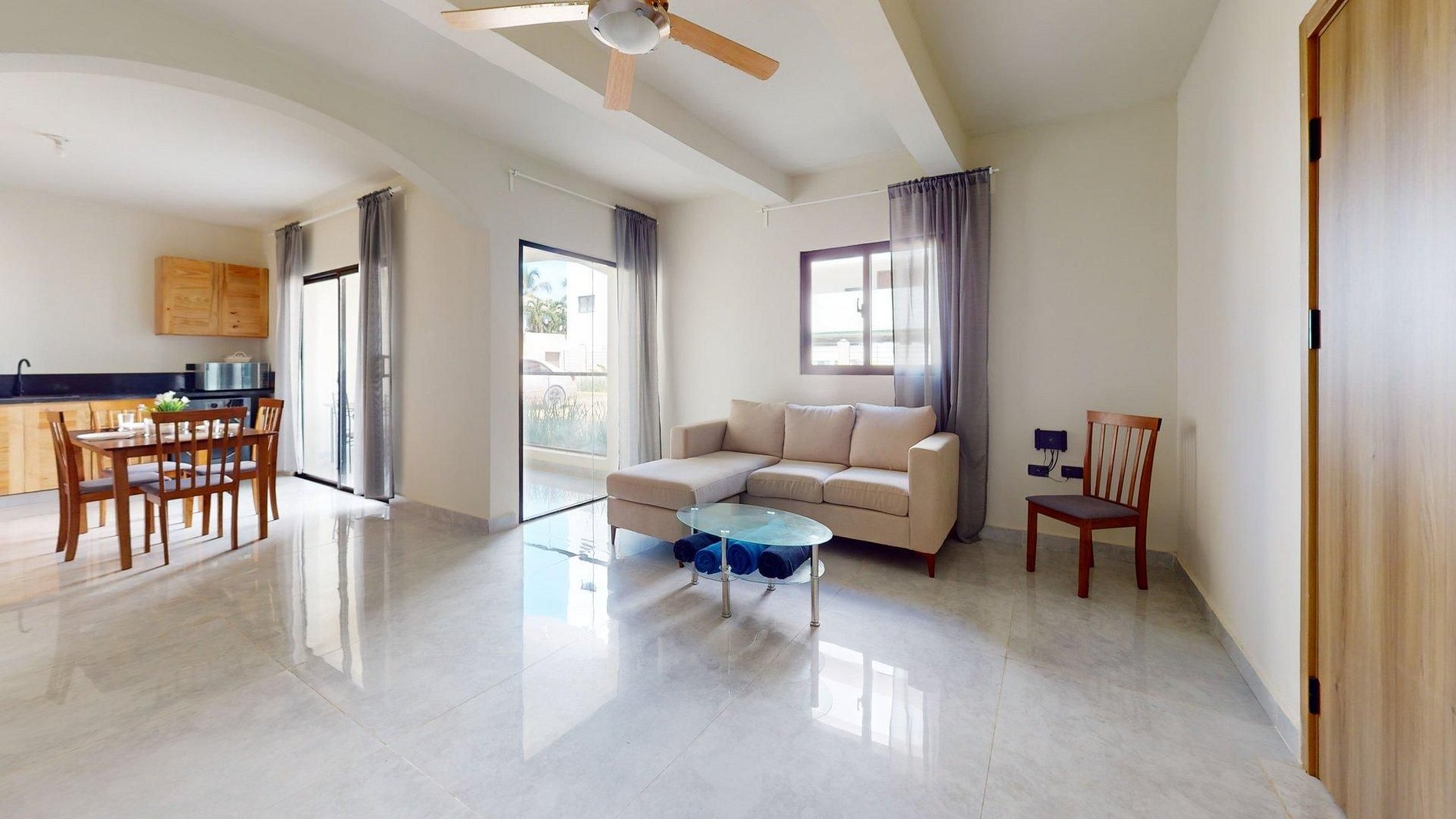 La ubicación es inmejorable: el Cortecito, una de las zonas más animadas de Bávaro, con bares, restaurantes, gimnasios, minimarkets, bancos, spas y, por supuesto, la playa, ubicada a solo 5 minutos caminando.
